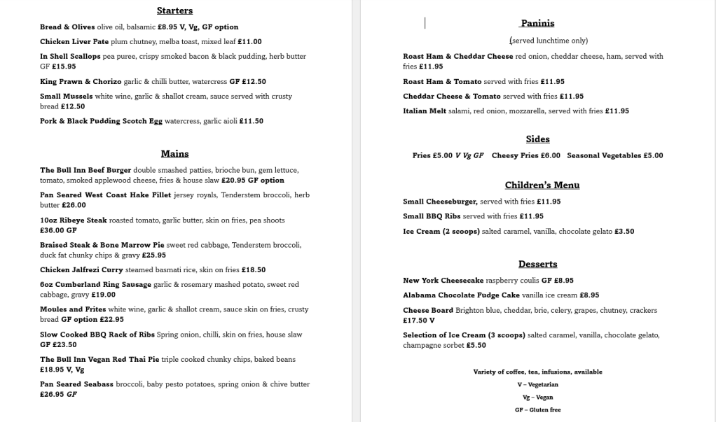 We offer a broad selection of creative and seasonal dishes, including vegetarian and vegan options using locally sourced produce wherever possible.
